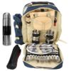 31 Piece Picnic Backpack Bag for 4 Person With Cooler Compartment, Detachable Bottle Holder, Power Flask, Plates, and Cutlery Set Perfect for Outdoor, Sports, Hiking, Camping, BBQs