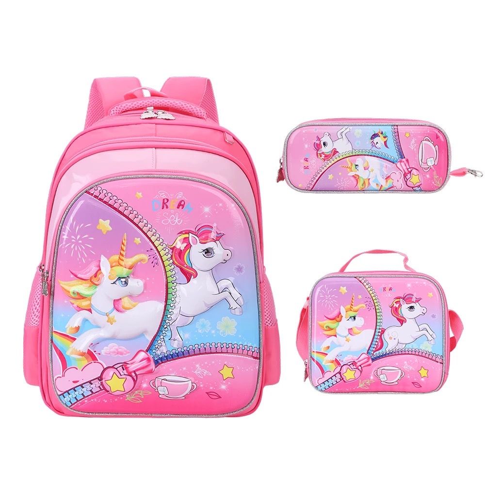 This Character Spacious School backpack, lunch bag and pencil case with different compartments to support other school accessories, medium-sized to be used by children between aged 3 to10 years, Made from high quality & durable polymer material.