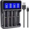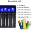 Compatibility – It applies to rechargeable battery as 32650, 26650, 26500, 25500, 22650, 22500, 21700, 20700, 18700, 18650, 18500, 18490, 18350, 17670, 17650, 17500, 17350, 16650, 16340(123A), 16500, 14650, 14500, 14430, 14350, 13650, 13500, 13450, 12650, 12500, 12340, 10500, 10440, 10350, 10340 1.2V Ni-MH/Ni-CD, 3.6V/ 3.7V Li-ion/IMR/INR/ICR, AAA/AA/C