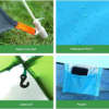 190T polyester fabric provides protection against wind and sand, 210D Oxford fabric on the bottom provides abrasion resistance, 1500MM waterproof woven PU coating and heat-sealed seam technology protects against rain and water. It uses 8MM fiberglass as the support pole, which is lightweight and strong. It is equipped with 4 iron ground nails and fastening ropes to increase its stability and prevent the pop-up tent stand from moving.