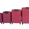 red luggage set, ABS luggage, hard-shell suitcases, spinner wheels, 4-piece luggage set, telescopic handles, TSA-approved locks, durable luggage, lightweight suitcases, travel essentials, organized interior, ribbed exterior, horizontal grooves, modern luggage, convenient travel, stylish luggage, luggage for business trips, luggage for vacations, secure suitcases, high-quality luggage, 360-degree mobility, travel accessories, travel bags, suitcase set, red suitcases, carry-on luggage, medium suitcase, large suitcase, extra-large suitcase, blue interior lining.