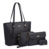 4 Piece Set Women Fashion Handbags Tote Bag Shoulder Bag – Black