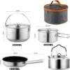 Food-Grade Stainless Steel: Crafted from high-quality, food-grade stainless steel, this cookware set is sturdy, safe, and designed to withstand harsh outdoor conditions. It’s wear-resistant, ensuring no paint loss and longevity for countless adventures.
