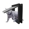 This is a very nice cat door. There is a magnet that pulls the door closed which helps it from continually swinging, the door is also totally clear, so the cats can see where they are going and what’s out there. White ABS plastic frame makes it durable. Overall, a well-built product and pretty straight forward installation, this is absolutely the best choice for you.