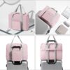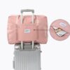 Foldable and lightweight – great space saving when folded, folded dimensions are: l: 8″ w: 8″ h: 1″, weighs only 0.35 lbs, lighter than traditional duffle bag. The back is designed to hang on the rollers on the suitcase, perfect for walking around the terminal in comfort and style