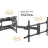 Heavy-duty arms provide strong support for larger and heavier TVs up to 50kg (110lbs).