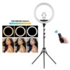 The ring light Features adjustable color light modes and touch dimming brightness to meet all your needs in different circumstances. Ring-shaped design, providing shadowless and even lighting, which can create charming catchlights during portrait photography. The 18 inch LED ring light is equipped with three cell phone holders which can hold three smartphones at the same time, and one metal tripod for mounting the LED light. The LED ring light is a good choice for makeup, shooting videos, making vlog, wedding photography, live streaming, advertisement photography, reading, daily life lighting and more.