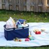 FOLDEBLE & EASY TO CLEAN: The traditional market baskets with handles features a rugged polyester canvas bag that’s easy to wipe down, clean, repels water, and is safe with spills; all of which make it perfect for families with kids. It features a beautiful grey and white chevron pattern that looks great, too. It is a collapsible picnic basket – foldable for easy storage.