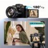 Record breathtaking 4K videos at 60FPS, perfect for vlogging, sports events, or indoor activities.3-Inch 180-Degree Flip Screen: