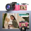 Record breathtaking 4K videos at 60FPS, perfect for vlogging, sports events, or indoor activities.3-Inch 180-Degree Flip Screen: