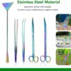 5 Pcs aquarium aquascaping tools kit: Straight Scissors, Curved Scissors, Substrate Spatula, Straight Tweezers, Bent Tweezers