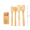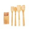 Bamboo kitchen utensil set with 5 pieces – spoon, spatula, slotted spatula, angled spoon, and a convenient holder made from a real bamboo shoot.