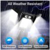 -IP65 waterproof: Our outdoor Solar Security Lights are Made of high-quality ABS material suitable for any weather, the solar lights outdoor waterproof could work well even in heavy rain or snowstorms.