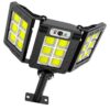 -Super bright solar Lights outdoor: A solar street light with 3 rotatable heads-panels, which could freely adjust the illumination angle of the lamp to be 270° wide-angle, with 360 COB chips brighter than SMD, can easily light up your yard.