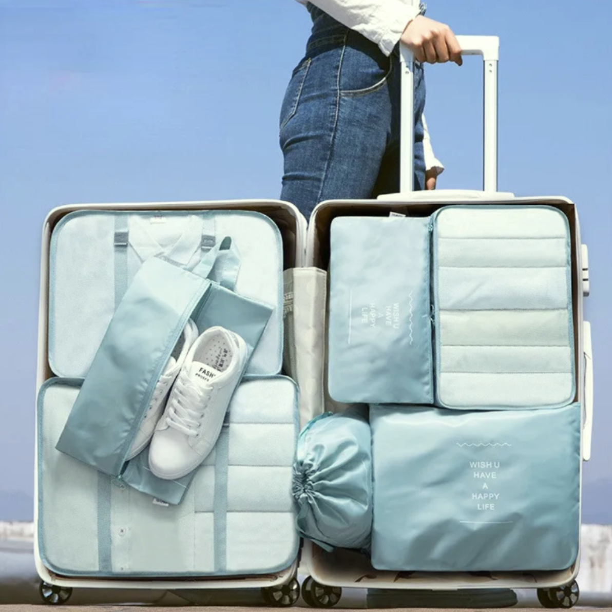7 Piece Ultimate Travel Organiser Set with 4-in-1 Travel Bottle Set - Turquoise