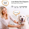 Ultra Quiet & Low Vibration Design: The dog clipper’s noise when working is less than 50 db. Low noise won’t make your dog scared and you’ll be able to trim its coat with ease and much faster!