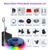 Control mode: wireless remote control and APP. 360 video booth can be easily controlled to achieve on/off, acceleration, deceleration and reversal; rocker arm is used to separate the support structure to avoid people from shaking when shooting; 360 platform diameter is 39.4 inches, can accommodate 3-4 people.