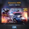 How is 8k different: With 8K HDMI’s unique Dynamic HDR and 12 Bit color processing technology, each scene of the video is every frame, with more ideal depth, brightness, detail, contrast and wider color gamut, giving you an amazingly viewing experience.