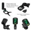 1. Specification: modulation clip x 1(black)+pick x 5(0.46mm random color)+tuner x 1+3-in-1 string changer tool x 1+black pick box x 1