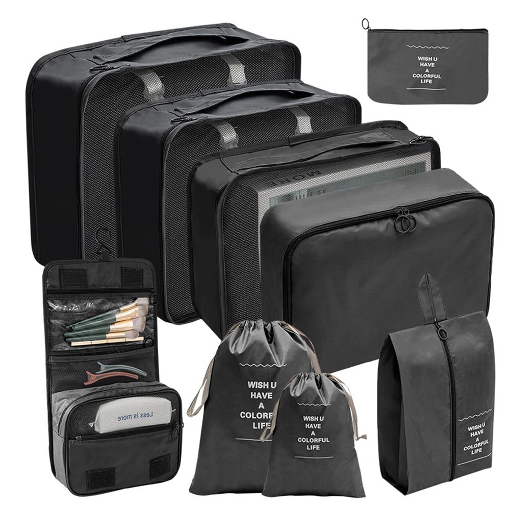 – with different size, the travel essential bag set can store and classify clothes, dirty laundry, bra, underwear, shoes, socks, cosmetics, towels, toiletries and electronics accessories well, a good companion for going out.