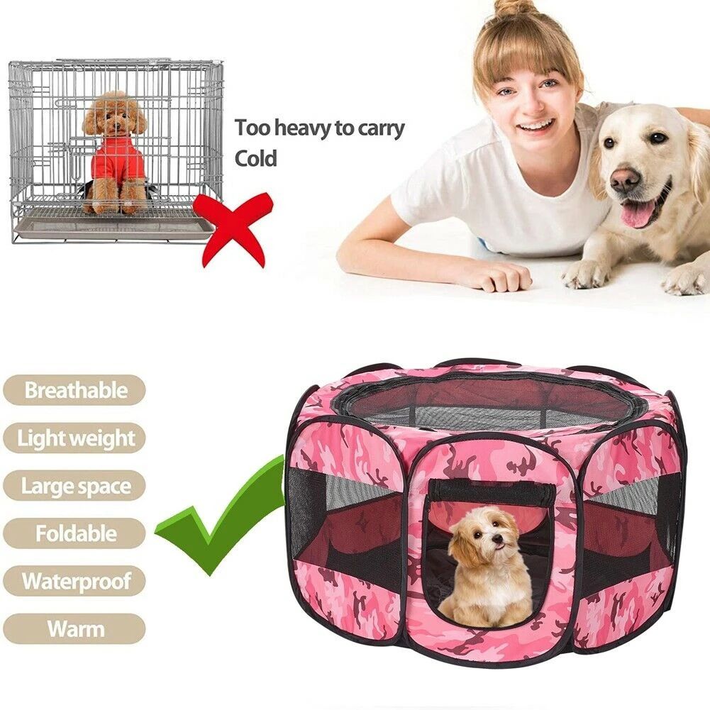 91x91x58cm Foldable Pet Playpen for Puppies/Dogs/Cats/Rabbits - Pink