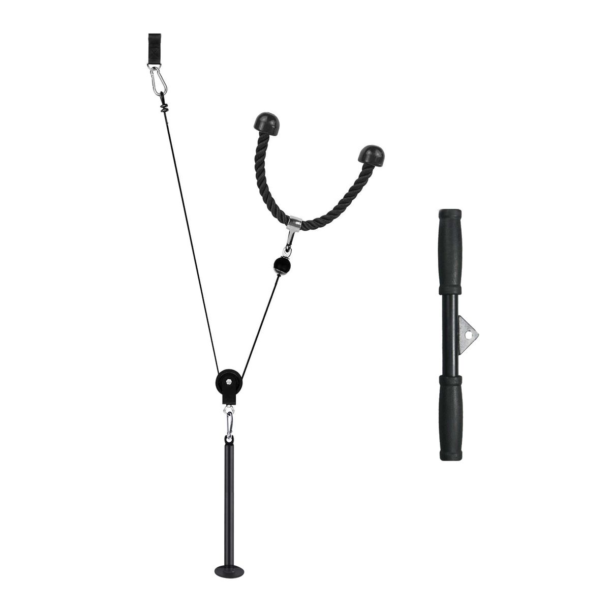 Unleash Your Inner Athlete: Embrace the power of the Pulley System, designed to revolutionize your home workout regime. This versatile set includes everything you need for a comprehensive upper body workout.