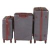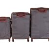 This 3-piece ABS Trolley Luggage Set is designed for travellers who prioritize both style and durability. Made from resilient ABS material, each suitcase features a hard-shell construction with a ribbed, textured wave pattern that helps prevent scratches, keeping your luggage looking pristine on every journey. The set includes small, medium and large suitcases, all in a sophisticated charcoal color with distinctive brown accents, providing a cohesive, professional look.