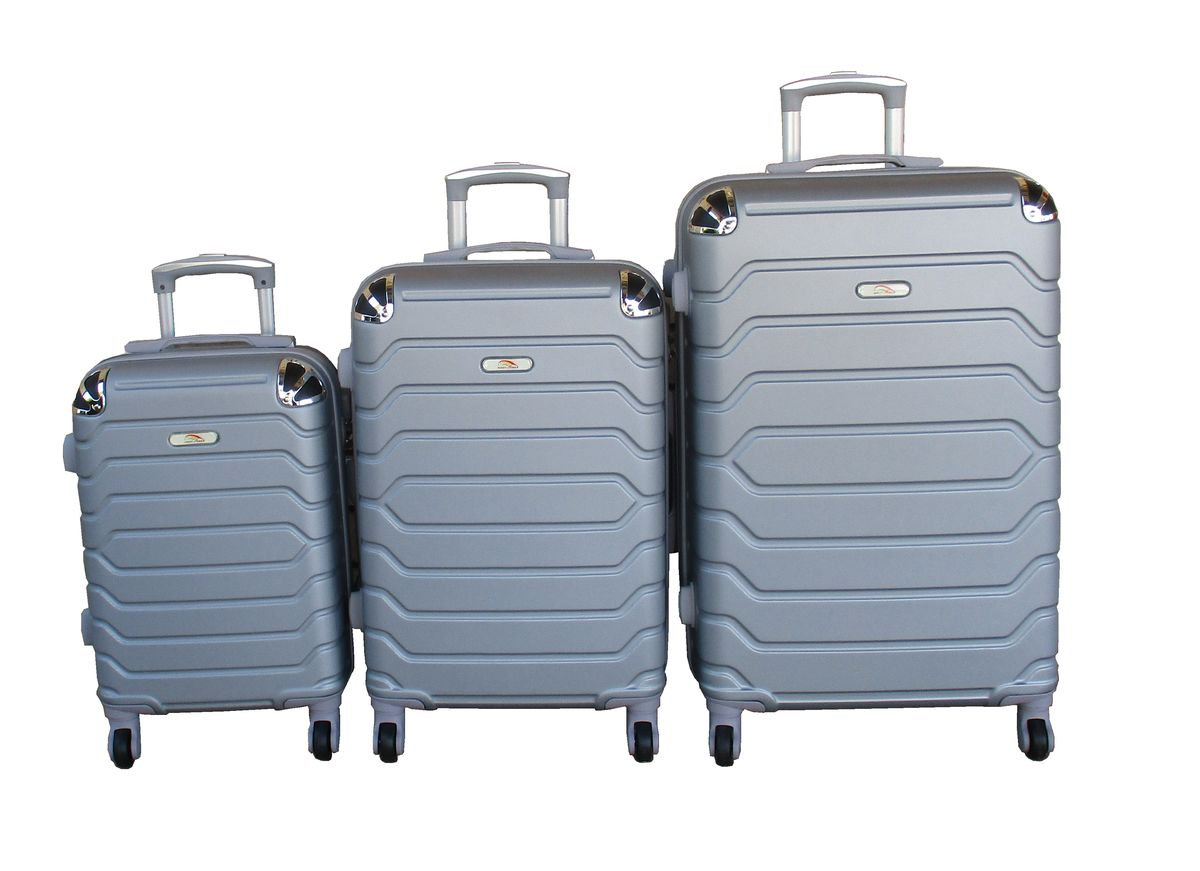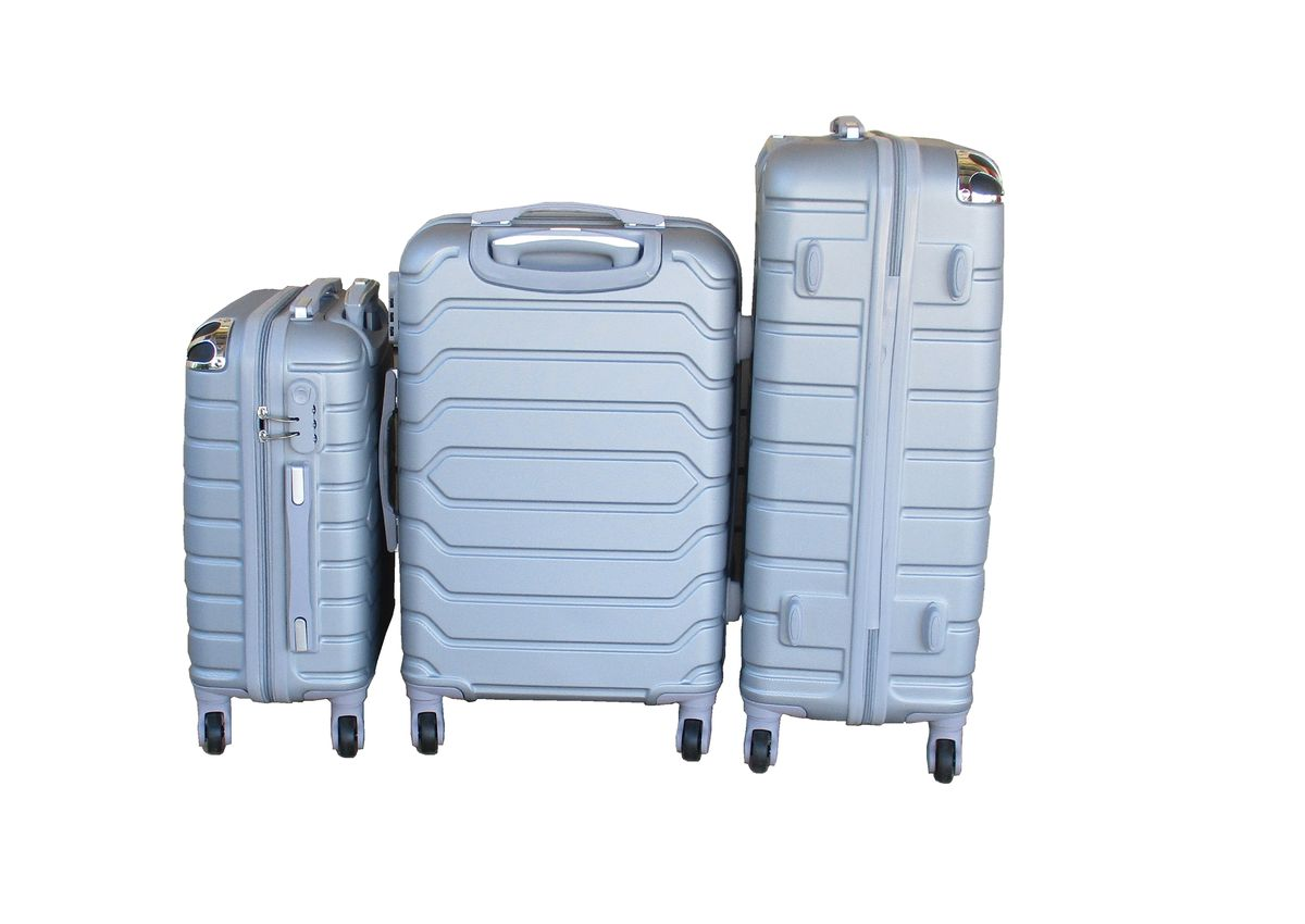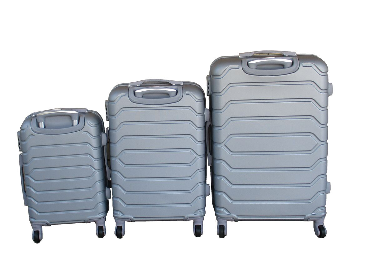 ABS luggage set, hard shell luggage, spinner wheels suitcase, silver luggage, 3-piece suitcase set, travel luggage, durable suitcase, telescoping handle luggage, built-in lock suitcase, lightweight travel suitcase