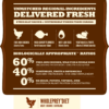 Fresh chicken (16 %). chicken meal (16 %). whole red lentils, whole green peas, turkey meal (6%), whole chickpeas, fresh chicken giblets (liver, heart) (4 %). herring meal (4%). eggs (4%), raw flounder (4%), fish oil (3%), chicken fat (2.5%). whole green lentils, whole yellow peas, pea fiber, pea starch, raw turkey livers (0.5 %), salt, dried kelp, fresh whole pumpkin, fresh whole butternut squash, fresh whole carrots, fresh whole apples, fresh whole pears, fresh whole zucchini, dried chicory root, fresh kale, fresh spinach, fresh turnip greens, fresh beet greens, fresh whole cranberries, fresh whole blueberries, fresh whole saskatoon berries, turmeric, milk thistle, burdock root, lavender, marshmallow root & rosehips.