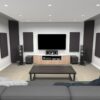 The core consists of glass wool and has a noise reduction coefficient (NRC) of 1.15 with an effective range from 35Hz to 20kHz. The bass trap is covered with an acoustically transparent fabric to allow the sound waves to be absorbed by the core. Our Bass Traps can be placed in the corner of any room due to their triangular structure. They are freestanding, or can be wall mounted using the preinstalled sawtooth hooks. The structure of the trap is sturdy which makes them stackable to a height of 2.4m