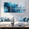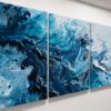 Acrylic Blue White 3 Piece Abstract Canvas Wall Art Deco