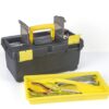 Made from strong virgin materials, with a lid that hinges all the way back to provide stability, 2 small compartments organiser built into the lid, and a convenient removable tray inside, the 40cm toolbox is ideal for all tool storage needs.