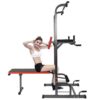 Adjustable All-in-One Pull-Up Bar Tower Dip Station with Bench Bar -E8-6-2