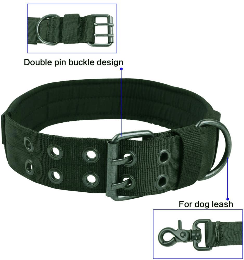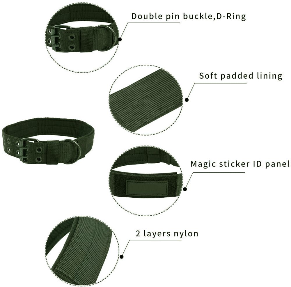 Adjustable Tactical Nylon Dog Training Collar with Metal Buckle – Green