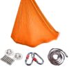 Aerial (Flying) Yoga is a unique practice inspired by the study of movement. It has elements of fun, yoga, dance and circus! The aerial yoga hammock is similar to the material you find on the stages of Cirque du Soleil and many other circus and dance theaters around the world. The aerial yoga hammock is suspended from two points creating a “U” shape hammock for your body to rest in, lean on, and fly. The aerial yoga hammock is a tool that allows the practitioner to depend their postures, create a fuller range of motion, deep en awareness, and in many cases heal their body.