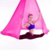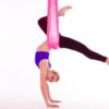 Aerial (Flying) Yoga is a unique practice inspired by the study of movement. It has elements of fun, yoga, dance and circus! The aerial yoga hammock is similar to the material you find on the stages of Cirque du Soleil and many other circus and dance theaters around the world. The aerial yoga hammock is suspended from two points creating a “U” shape hammock for your body to rest in, lean on, and fly. The aerial yoga hammock is a tool that allows the practitioner to depend their postures, create a fuller range of motion, deep en awareness, and in many cases heal their body.
