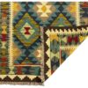 Kilims are so-called flatweaves and look almost identical from the top and bottom. They can thus be used on both sides, which is a great advantage over other types of carpet. They also have very distinctive patterns and designs. Thanks to the weaving technique with warp and weft, the patterns are linear and geometric. When the design elements are pulled apart, small holes are visible between them, which also result from the weaving technique. Typical are strong colours that are extracted from plants and minerals like persian carpets. Thus, original kilims from the middle east are 100% natural products.
