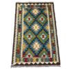 Kilims are so-called flatweaves and look almost identical from the top and bottom. They can thus be used on both sides, which is a great advantage over other types of carpet. They also have very distinctive patterns and designs. Thanks to the weaving technique with warp and weft, the patterns are linear and geometric. When the design elements are pulled apart, small holes are visible between them, which also result from the weaving technique. Typical are strong colours that are extracted from plants and minerals like persian carpets. Thus, original kilims from the middle east are 100% natural products.