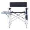 For maximum comfort and convenience, this durable steel frame camping chair is designed to be roomy and sturdy with a max weight capacity of 130kg. Supplied with a pull-up side table and nifty cup holder, this chair will keep you comfortable for hours.