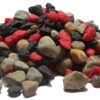 Bongo Natural gravel mix is for decorative purposes used mainly in Aquariums. It can also be used for other decorative purposes around the house like flower beds, potted plants, etc. High quality colouring is used to prevent discolouring and a faded look. The gravel is non-toxic and can be used in any fresh water aquarium. Appearance is one of the main reasons for gravel, depending on your taste various colours can be used. Naturally occurring organisms will grow on the rocky substrate and will help keep your tank clean as they eat the fish waste. When recreating a natural environment, gravel is a good choice. Gravel can make the fish feel more at home and it doesn’t reflect on the fish, as glass would. All types of burrowing fish enjoys nosing around in the gravel to search for food that has descended to the bottom. Eggs will also be hidden among the gravel. Tank size 300mm (lenght) x 200mm (Width) can use up to 5Kg of substrate as displayed in the picture.