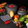 Made from super lightweight, hard-anodizing aluminium that effectively prevents rust, water seepage and water leakage, this compact little cooker will allow even minimalist backpackers to whip up gourmet meals in no time. The bottom of the pots adopts a small thread design for even heat distribution, saving gas and cooking time. Equipped with soft fold-back handles that are anti-scalding, non-slip, and easy to grasp.