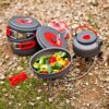 Made from super lightweight, hard-anodizing aluminium that effectively prevents rust, water seepage and water leakage, this compact little cooker will allow even minimalist backpackers to whip up gourmet meals in no time. The bottom of the pots adopts a small thread design for even heat distribution, saving gas and cooking time. Equipped with soft fold-back handles that are anti-scalding, non-slip, and easy to grasp.