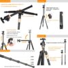 The central axis of this camera tripod is 90° horizontal, which can better meet special shooting requirements such as angle shooting, macro shooting, and vertical shooting.