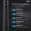 IPX7 Waterproof & 6 Replacement Toothbrush Heads Sonic toothbrush has an IPX7 waterproof design, allowing users to safely use the power toothbrush while showering or bathing.Includes 6 replaceable Electric Toothbrush Heads . These 6 brush heads provide 18 months of use.