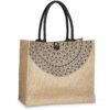Great for all day to day uses, this natural Jute bag has a gorgeous front and back print.