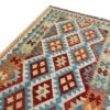 Kilim rugs are recognized for their simple and bold geometric designs. The main difference between a Kilim rug and other types of handmade rugs is that Kilim is a flatweave and looks almost identical from the top and bottom. Flatweave describes a rug that is woven on a loom rather than knotted (by hand one knot at a time). It iscreated by interlocking warp (vertical) and weft (horizontal) threads. – So still very much made by hand -but with a weaving technique, rather than knotting. They can thus be used on both sides, which is a great advantage over other types of carpets.