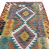 Kilim rugs are recognized for their simple and bold geometric designs. The main difference between a Kilim rug and other types of handmade rugs is that Kilim is a flatweave and looks almost identical from the top and bottom. Flatweave describes a rug that is woven on a loom rather than knotted (by hand one knot at a time). It iscreated by interlocking warp (vertical) and weft (horizontal) threads. – So still very much made by hand -but with a weaving technique, rather than knotting. They can thus be used on both sides, which is a great advantage over other types of carpets.
