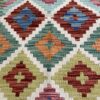 Kilim rugs are recognized for their simple and bold geometric designs. The main difference between a Kilim rug and other types of handmade rugs is that Kilim is a flatweave and looks almost identical from the top and bottom. Flatweave describes a rug that is woven on a loom rather than knotted (by hand one knot at a time). It iscreated by interlocking warp (vertical) and weft (horizontal) threads. – So still very much made by hand -but with a weaving technique, rather than knotting. They can thus be used on both sides, which is a great advantage over other types of carpets.