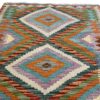 Kilim rugs are recognized for their simple and bold geometric designs. The main difference between a Kilim rug and other types of handmade rugs is that Kilim is a flatweave and looks almost identical from the top and bottom. Flatweave describes a rug that is woven on a loom rather than knotted (by hand one knot at a time). It iscreated by interlocking warp (vertical) and weft (horizontal) threads. – So still very much made by hand -but with a weaving technique, rather than knotting. They can thus be used on both sides, which is a great advantage over other types of carpets.