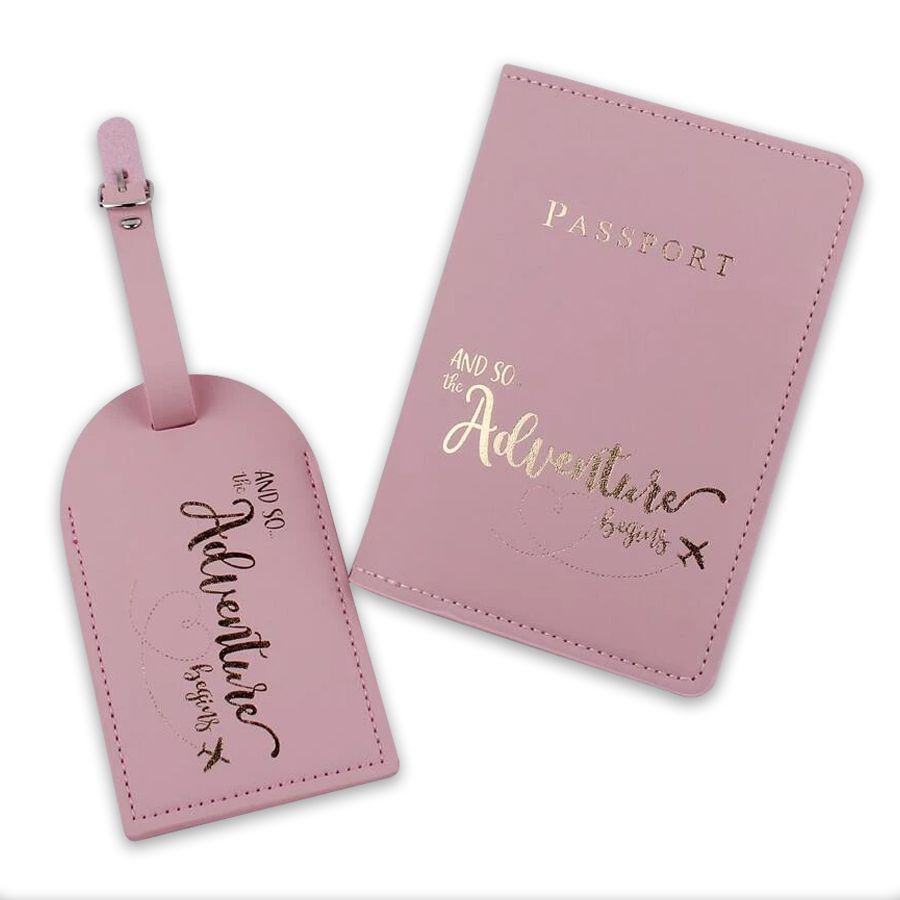 And So The Adventure Begins – Matching Passport Cover Luggage Tag Set